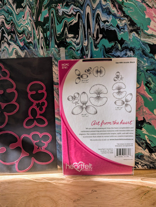 RARE DISCONTINUED Heartfelt Botanic orchid cling stamp & die set for card making, scrapbooking, mixed media, paper crafts
