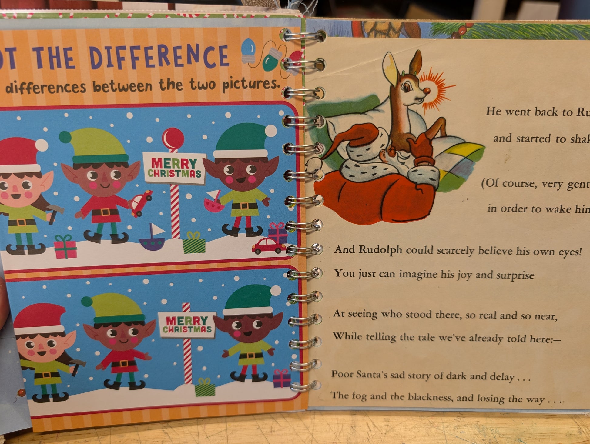 It has a wire binding bound with my Cinch machine. I apologize if any of the books aren't perfectly lined up....Some of the bindings may be a bit wonky. Please feel free to contact me in regards to this if you want more information or are looking for something specific. All of the wire bindings are wrapped in small pieces of ribbon that are tied on loosely so you can remove them and use them as tag toppers, paperclip flags, or embellishments for other Christmas crafts and gifts!